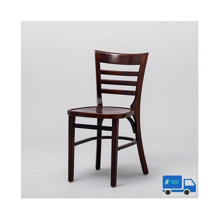 Stevige stoel, eenvoudige goed zittend. Warme uitstraling. Breedte 40 cm. Stapelbaar max 5 hoog.