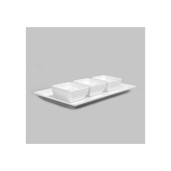 Set melamine bord lang + 3 bakjes 9 cm.