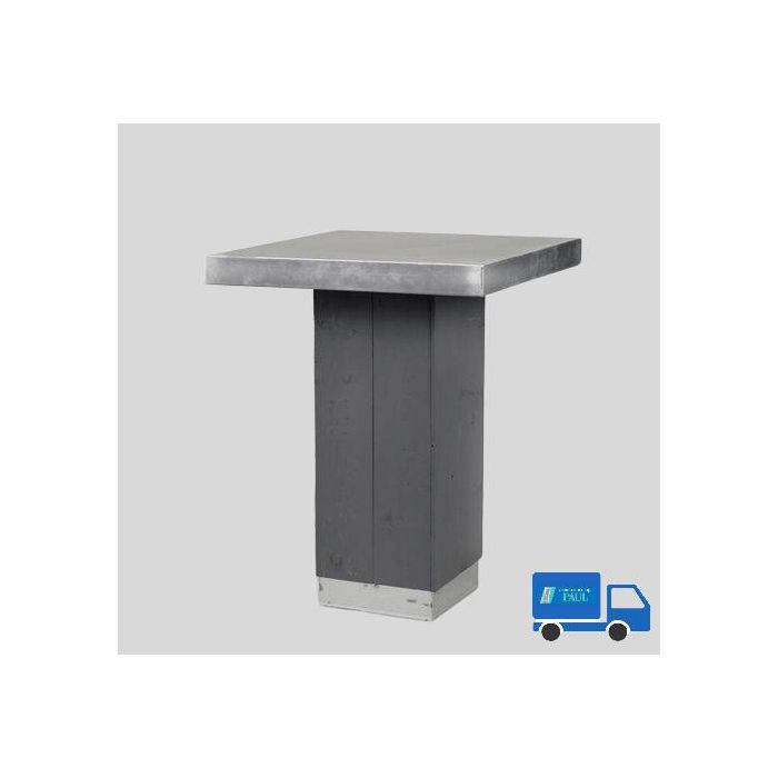 Stevige statafel van Zink . Robuuste uitstraling niet geschikt voor representatief gebruik. Maten Bovenblad 90 x 90 cm Hoogte 112 cm